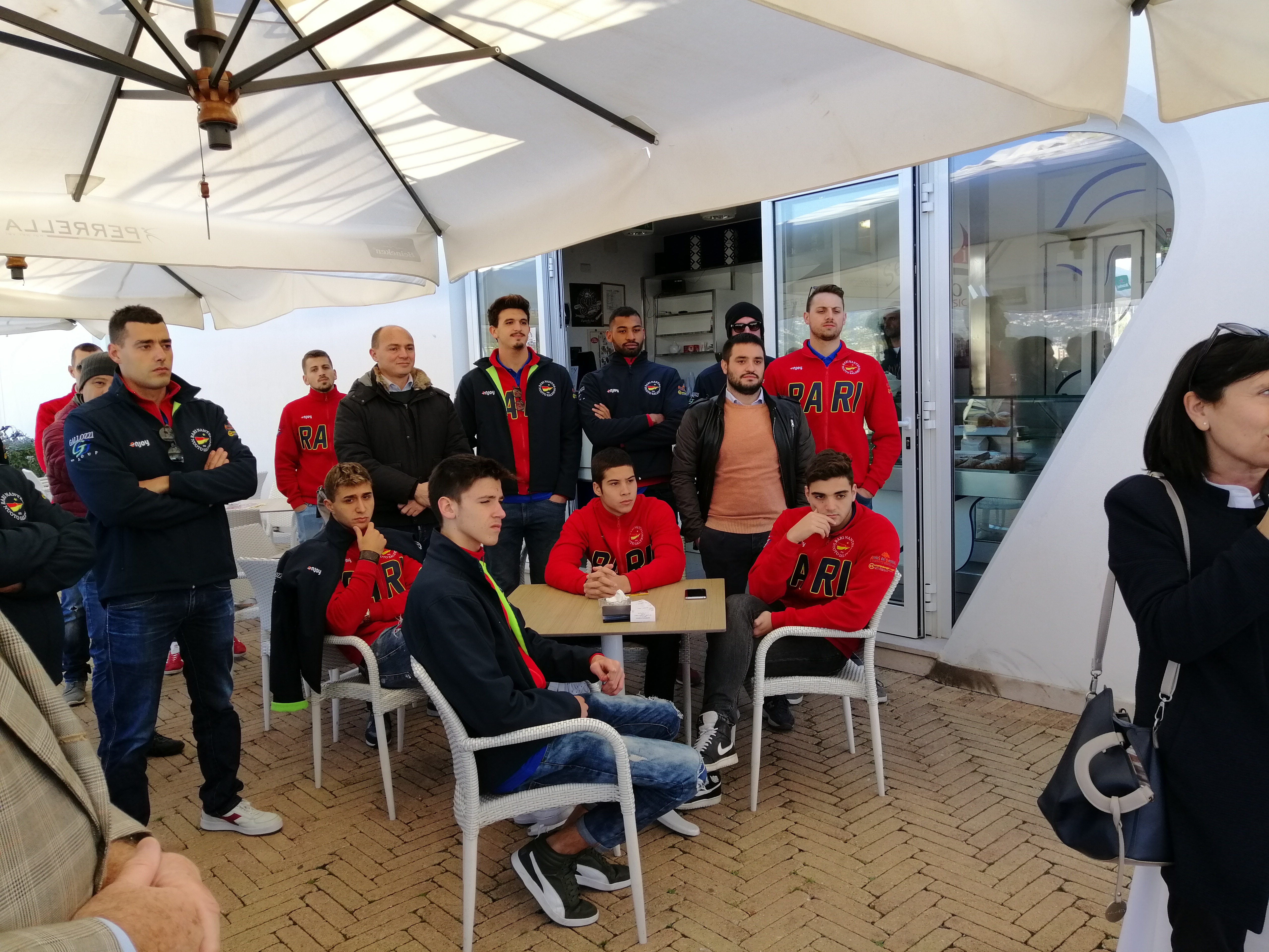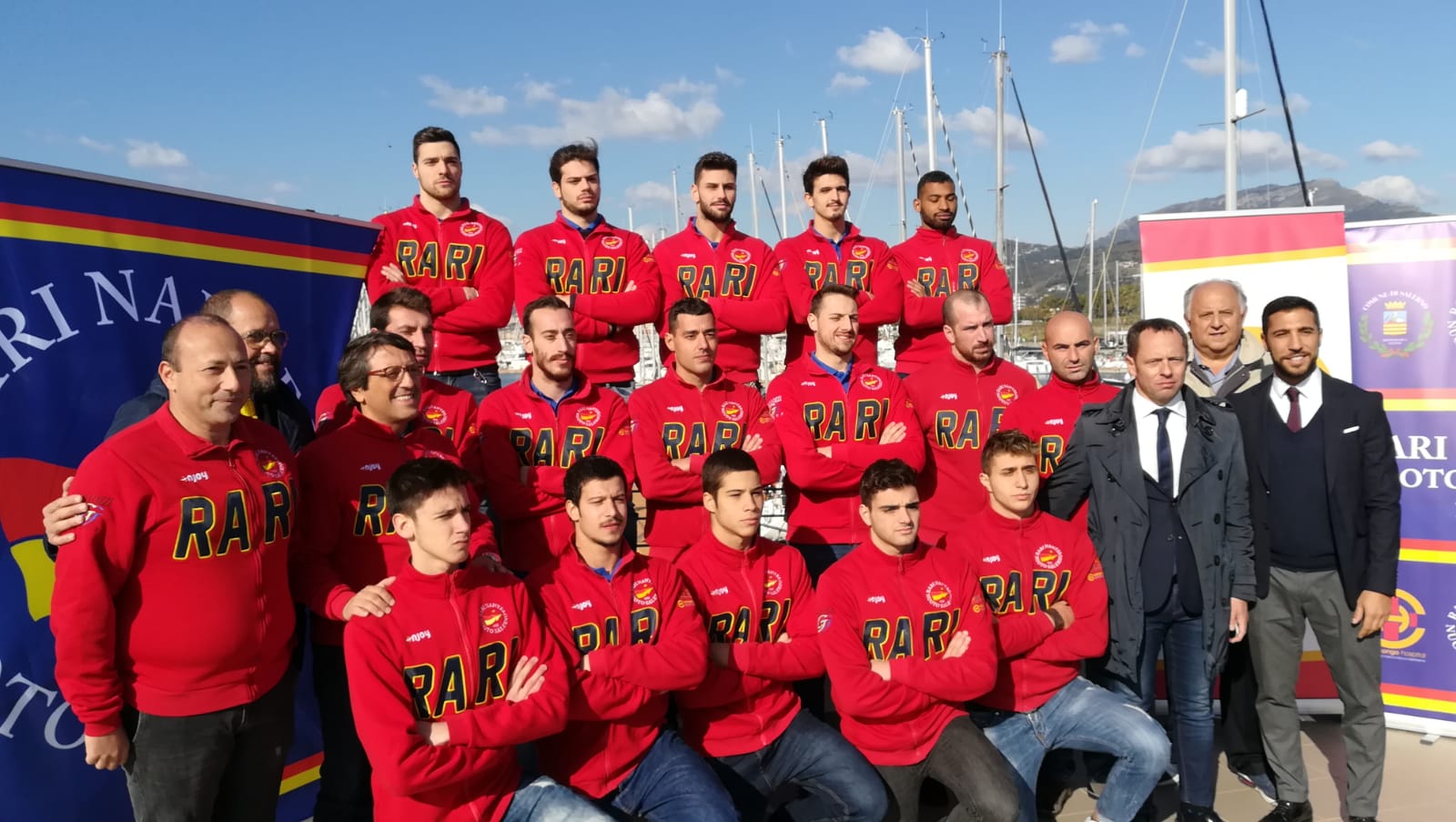 Presenti, oltre a tutti gli atleti della prima squadra, una folta rappresentanza di pallanuotisti che cinquanta anni fa conquistarono la storica promozione della Rari Nantes in serie B.