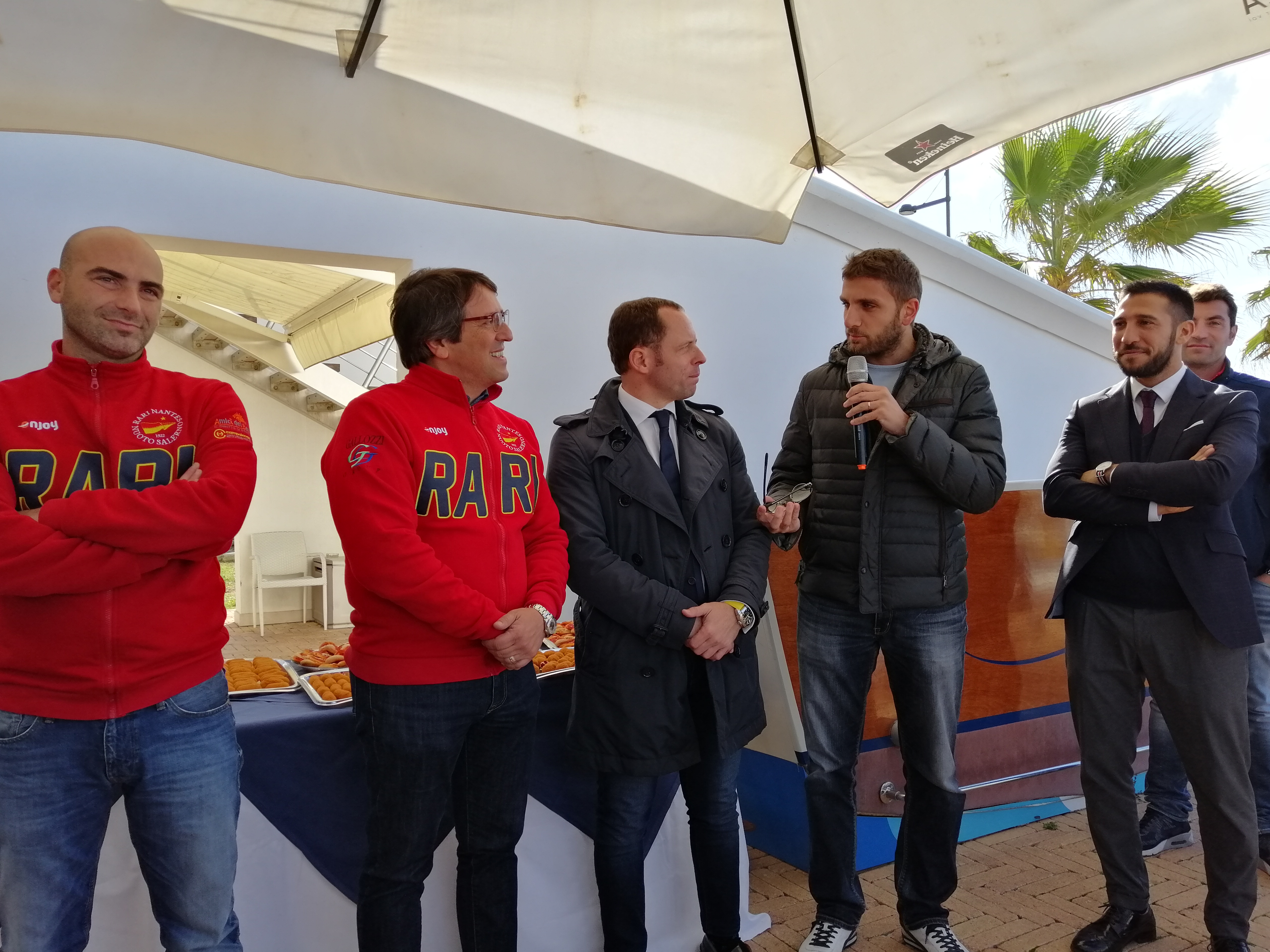 Dopo il presidente ha preso la parola l’assessore allo sport del Comune di Salerno Angelo Caramanno: sono qua anche a titolo personale, mi ritengo amico di questa società. Il Comune è sempre pronto a sostenere le società che con passione e professionalità portano avanti un discorso sportivo e sociale, come fa la Rari Nantes. Anche se con qualche carenza strutturale, siamo comunque fieri che da Salerno molte società si stiano mettendo in mostra a livello nazionale.
