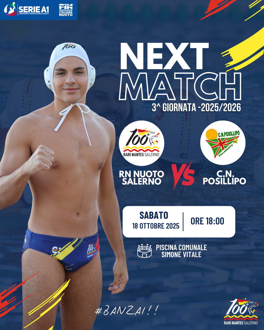 La Rari Nantes Nuoto Salerno torna in vasca per la terza giornata del campionato di Serie A1 con il derby piΓΉ atteso!